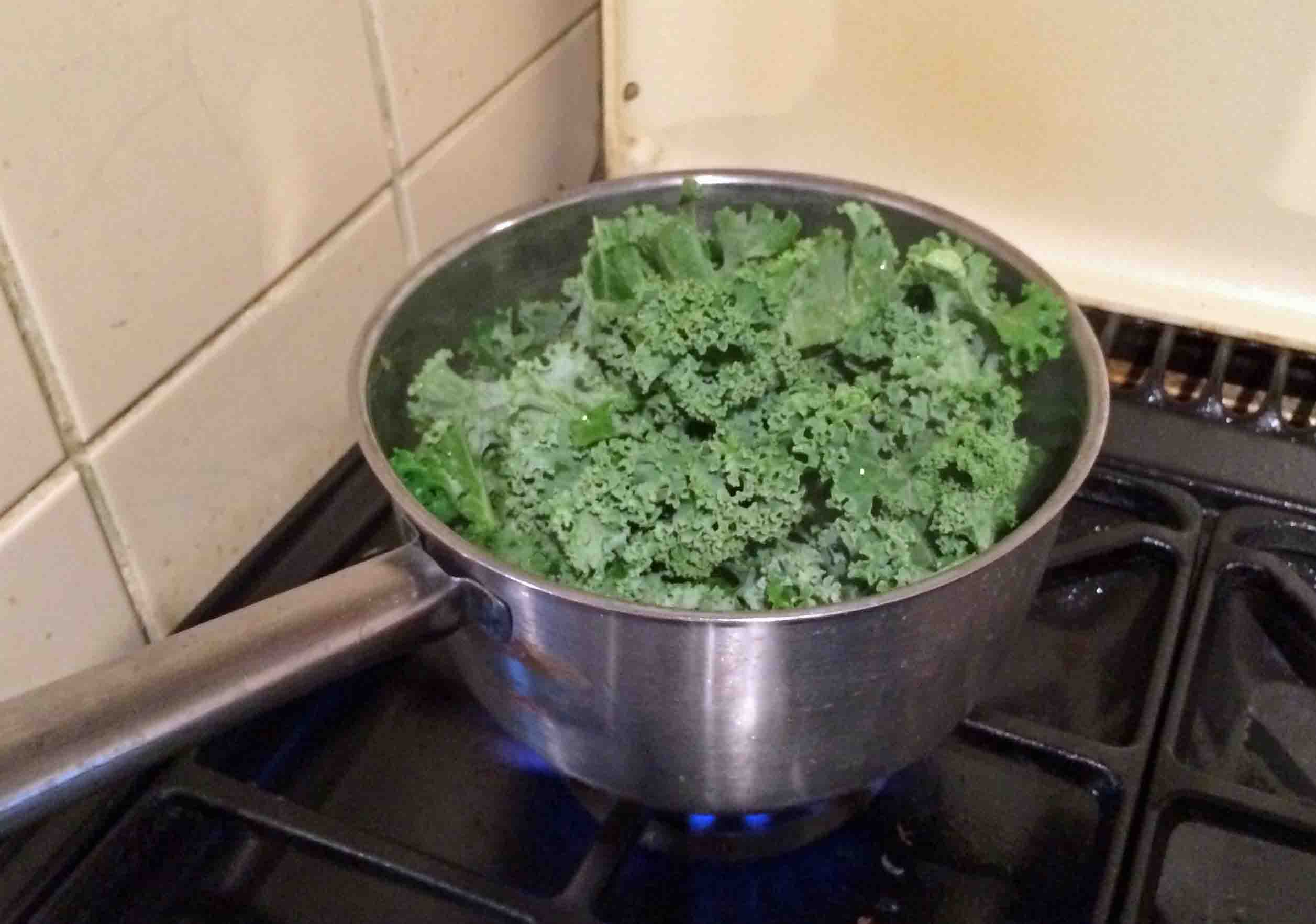 Bring a small amount of water to the boil in a pot, add the kale, put on a lid and simmer for 5 minutes.