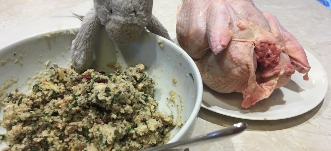 He thinks he has really perfected it now so here is is recipe for stuffing a Christmas bird, be it a turkey or (his favourite) a goose.