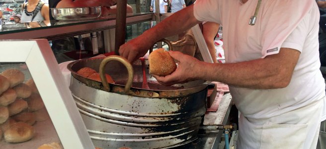 After a bit of a trot around the old city to work off one or two calories, DonQui summons up the courage to taste that most infamous of Palermo street food — the pani ca meusa, or spleen sandwich.