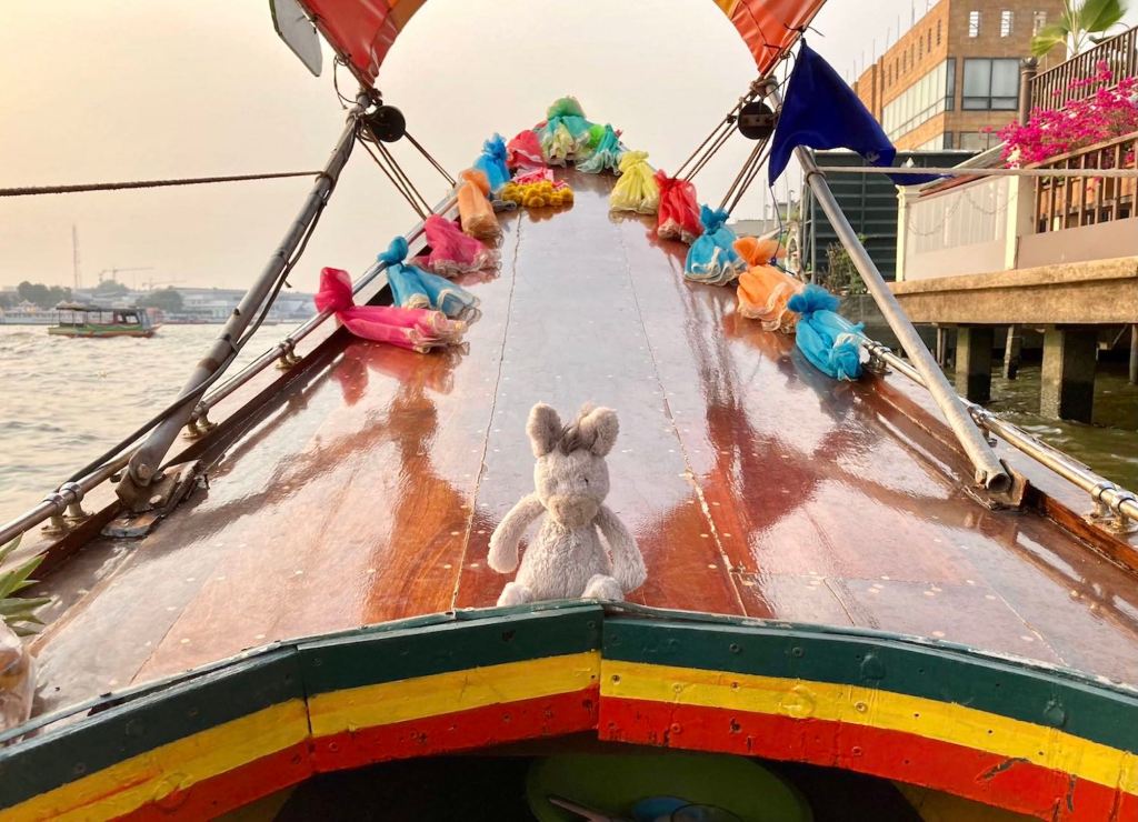 DonQui has engaged one of Bangkok’s famous long tail boats to give him a tour of the river and canals.