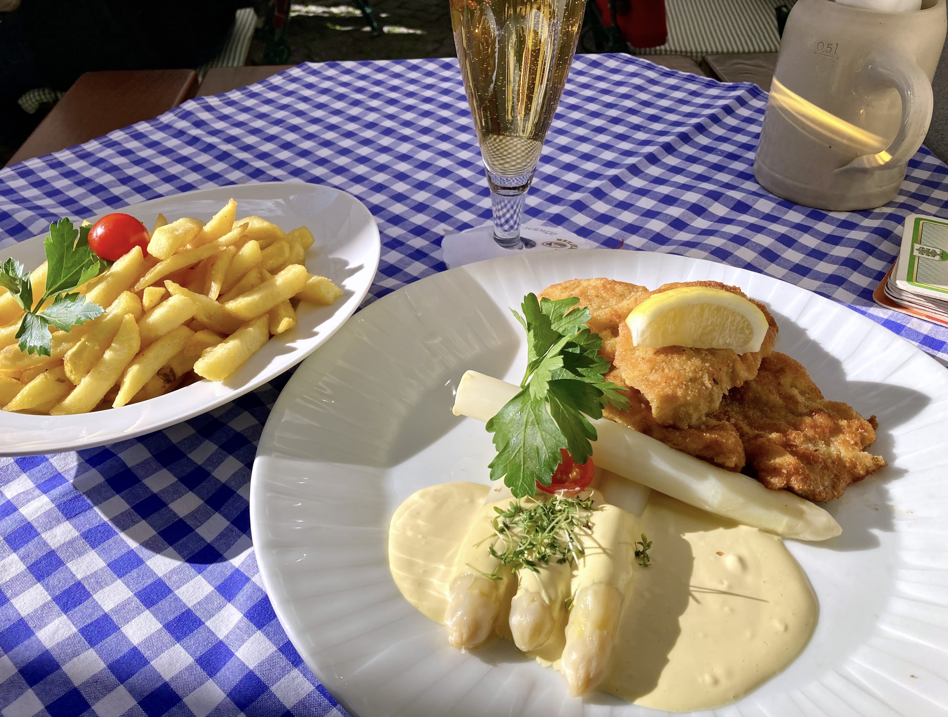 This being an asparagus producing area and it being asparagus season, the vegetable appears on virtually every menu. DonQui enjoys the more delicate white asparagus for a change as they are very hard to find in the UK.